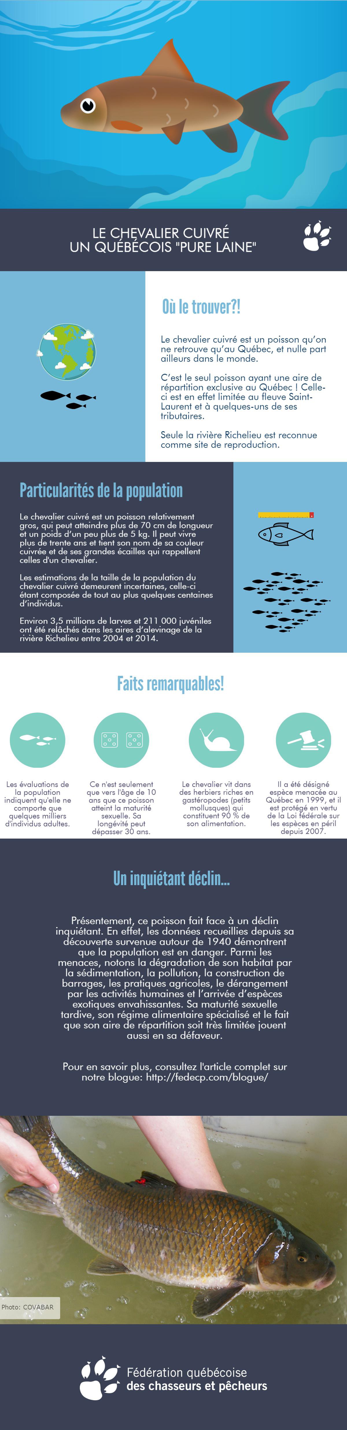 Il nous semble souvent que les espèces animales les plus particulières vivent dans les autres pays. Pourtant, notre province recèle d’espèces captivantes, telles le chevalier cuivré, un poisson qu’on ne retrouve qu’au Québec, et nulle part ailleurs dans le monde. C’est le seul poisson ayant une aire de répartition exclusive au Québec ! Celle-ci est en effet limitée au fleuve Saint-Laurent et à quelques-uns de ses tributaires et seule la rivière Richelieu est reconnue comme site de reproduction.