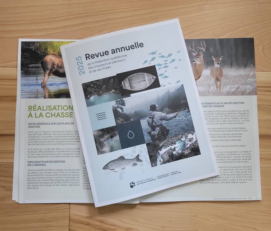 Procurez-vous le bilan de l'année 2025 des actions de la Fédération québécoise des chasseurs et pêcheurs et de ses filiales, la fondation Héritage faune et l'action éducative Sécurité nature.