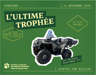 *Les formations équivalentes au certificat du chasseur pour le maniement de l'arme à feu obtenues ailleurs au Canada sont désormais reconnues. Pour obtenir votre certificat du chasseur, vous devez présenter au ministère de l'Environnement, de la Lutte contre les changements climatiques, de la Faune et des Parcs un certificat ou une preuve de compétence délivré par la province ou le territoire concerné. Pour plus de renseignements et pour faire votre demande, contactez le MELCCFP.